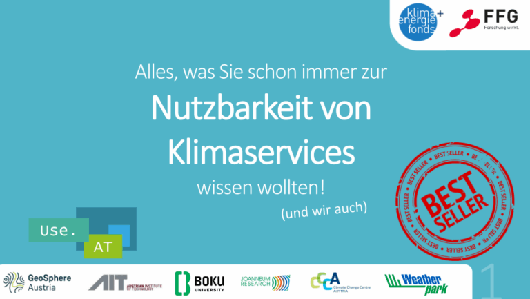 Der Bedarf an verlässlicher Klimainformation ist groß. Aber worauf kommt es bei der Entwicklung von Climate Services, d. h. von Klimadienstleistungen und Produkten, die über die reine Datenbereitstellung hinausgehen, an? Das Projekt Use.AT hat sich zum Ziel gesetzt, das herauszufinden. Dieses Wissen soll in die Entwicklung der zukünftigen Klimaszenarien für Österreich im Rahmen der Initiative Klimaszenarien.AT einfließen.