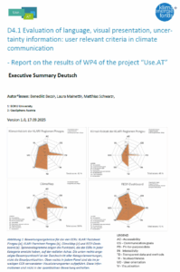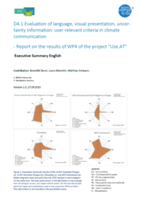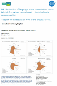 This report summarizes the results of the activities in WP4 of Use.AT. The aim was to identify best practice criteria for visual and textual representation in climate communication resources (CCRs) from the scientific literature. Based on these criteria, a gap analysis of previous materials based on ÖKS15 was envisioned, along with recommendations of how to improve the communicative aspects of these resources.